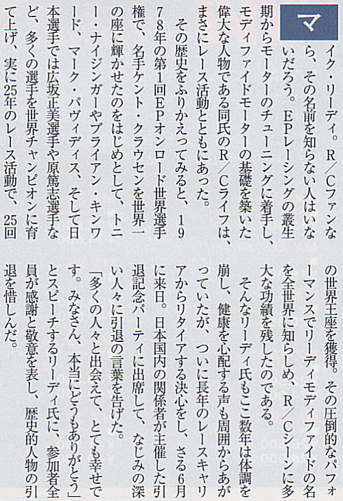 リーディ氏の引退表明を受け私もヨコモを退社する決心をしました。