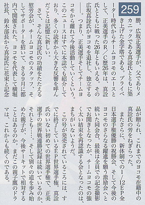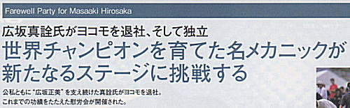 注: 私の本名は、廣坂 正明 ですが、 ヨコモ在籍中は会社の意向にて